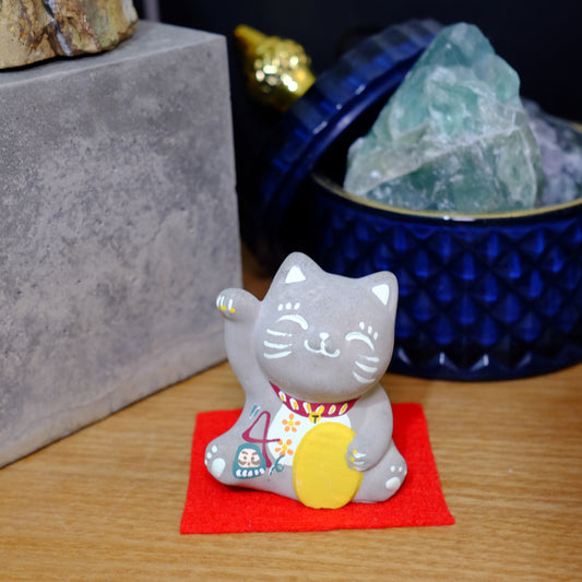 Smile Blessing Meow |「2」| Handmade Custom Concrete Lucky Cat Inspired by Japanese Maneki-Neko | sbc0022