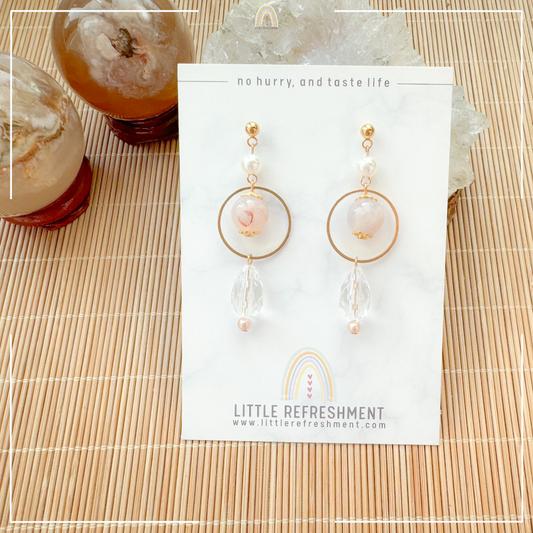 Drops of Blessings (S) | Cherry Blossom Agate ~10mm | Natural Stone Earrings