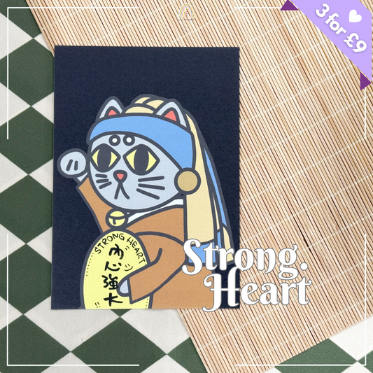 Limited Written Ver. | Blessing cat with a Pearl Earring | Original Design Blessing Card