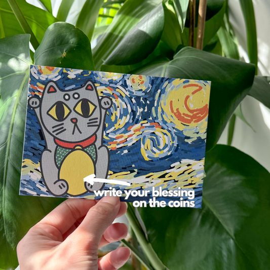 Blessing Cat in The Starry Night | Original Design A6 Prints Blessing Card