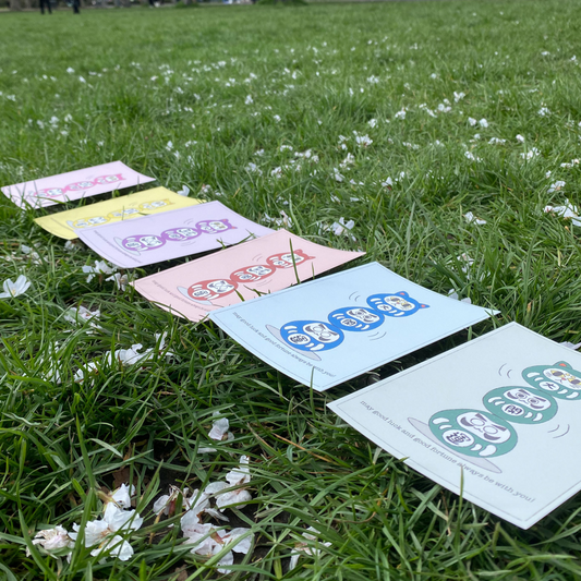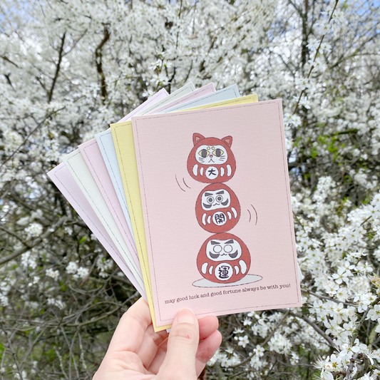 Make a Wish Daruma | Set of 6 | Original Design A6 Prints Blessing Card